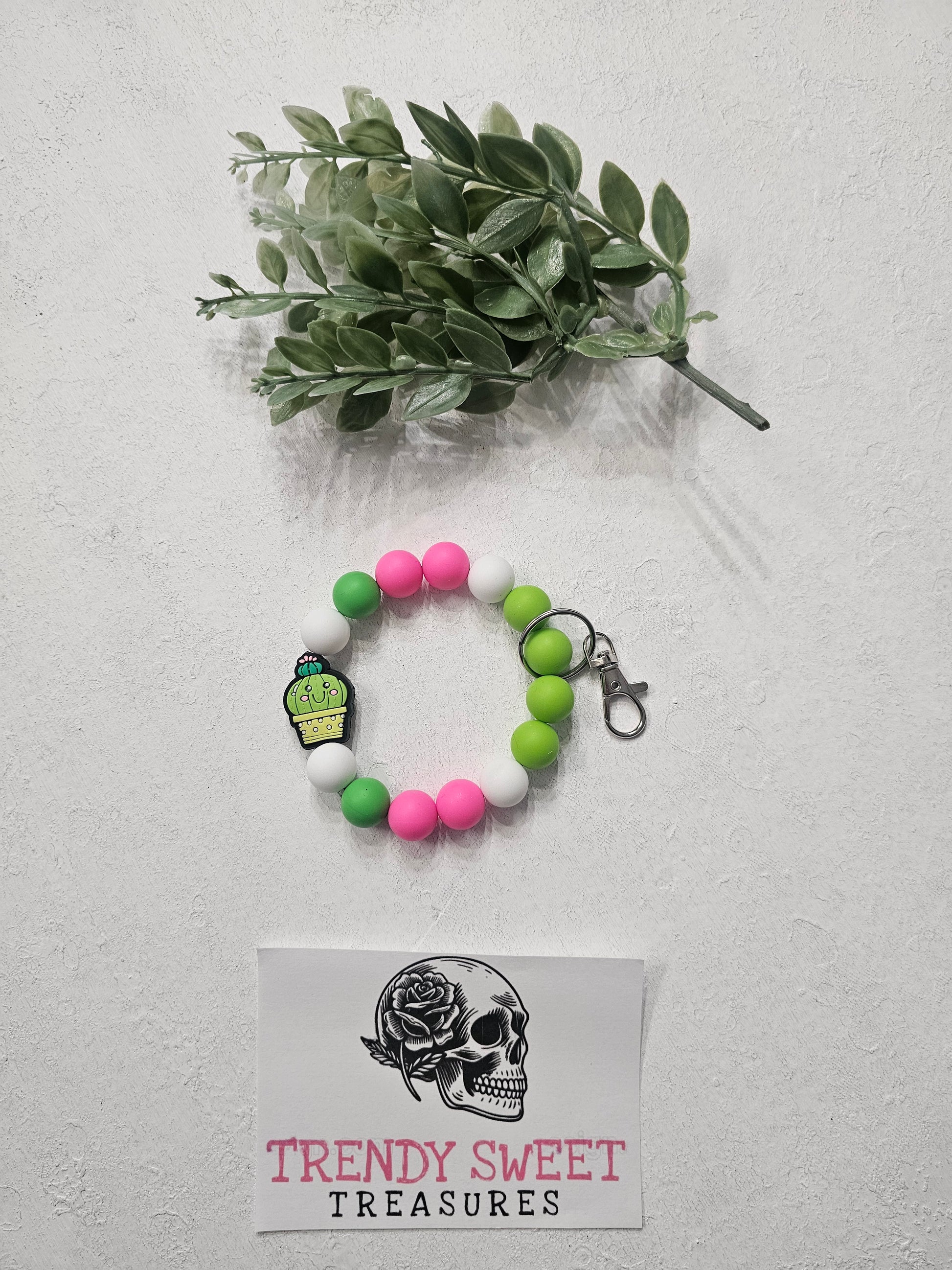 This bright beaded wristlet keychain makes a statement! Whether you're running errands, heading to work, or juggling keys and coffee—this silicone bracelet keychain adds sass flair to your day.