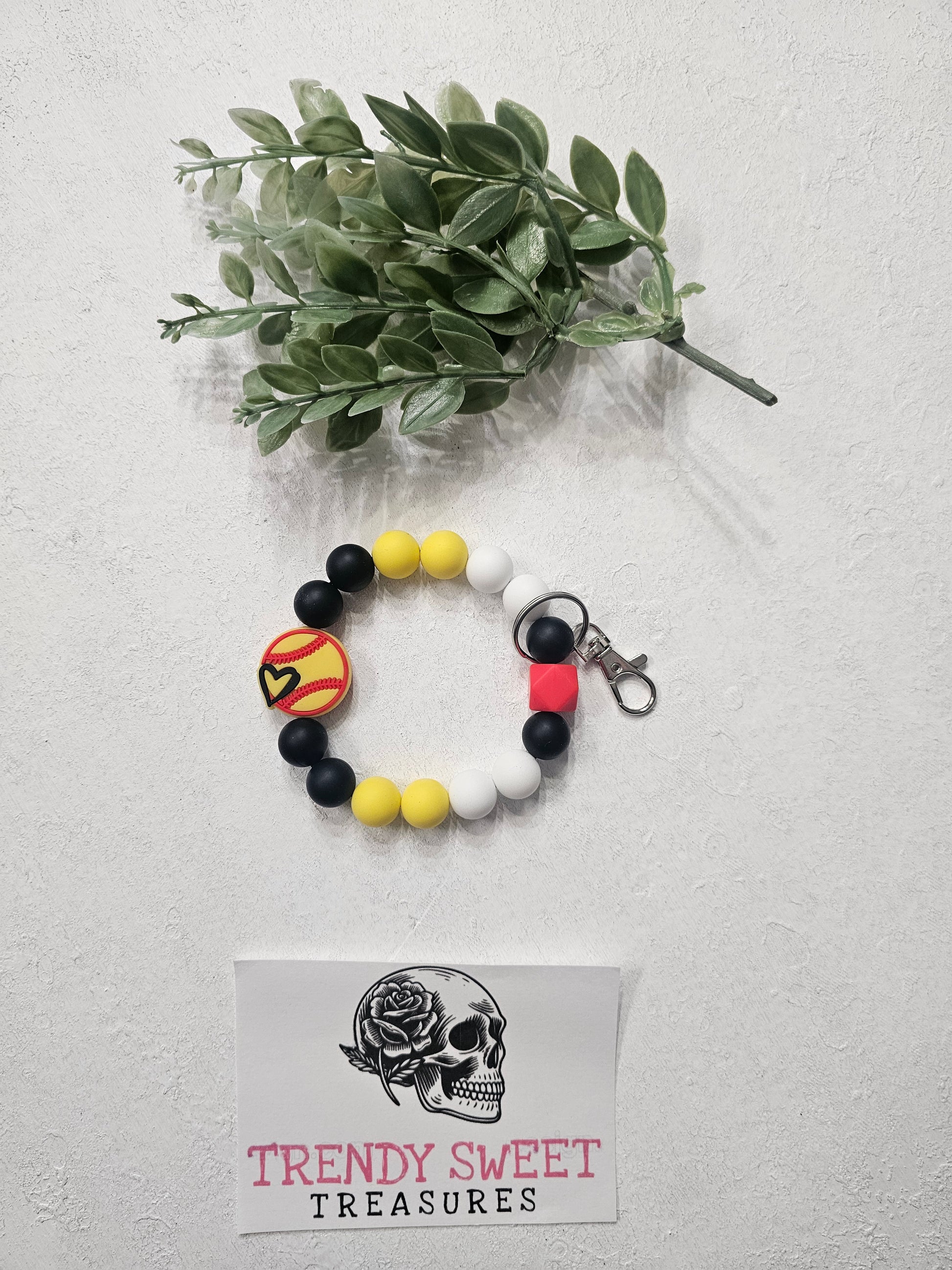 Softball Beaded Bracelet Keychain